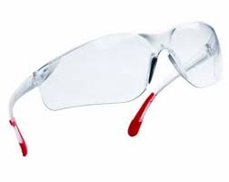Spectacles, Safety, Brand: Forte, Model: V300, Frameless. Impact Resistant Polycarbonate Lens, 99.9% UV Protection. Clear/Dark, Anti Scratch, wide lens colored ventilated temples. EN166F/ANSIZ87.1 STD, Made in India.